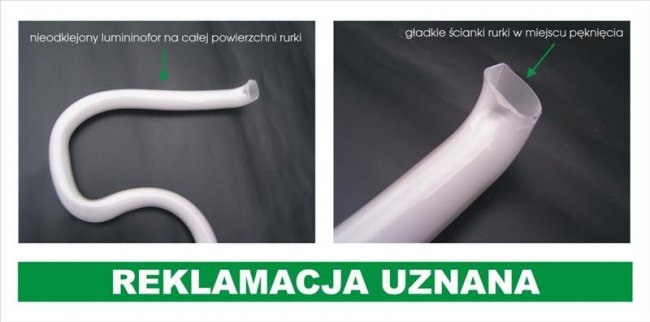 Gwarancji podlegają wszystkie uszkodzenia fizyczne, które rozróżnia się od mechanicznych na podstawie obserwacji struktury szkła w miejscu pęknięcia (rurki o uszkodzeniach mechanicznych mają nierówne krawędzie) oraz na podstawie obserwacji powłoki luminoforu (jeżeli występuje) w miejscu uszkodzenia. Luminofor w rurkach uszkodzonych mechanicznych, które powodują gwałtowne zmiany ciśnienia wewnątrz rurki, zostaje oderwany od ścianek rurki w miejscu uszkodzenia. W rurkach uszkodzonych fizycznie (rozprężenie szkła), proces wyrównywania ciśnień trwa dłużej i dlatego mają one nienaruszoną strukturę luminoforu w miejscu pęknięcia. Uszkodzenia elektryczne rozpatrywane są indywidualnie i zależą od tego czy transformator/zasilacz dostarczany był przez producenta rurek i czy podłączenia elektryczne wykonane były zgodnie z dołączonym schematem i instrukcjami.
